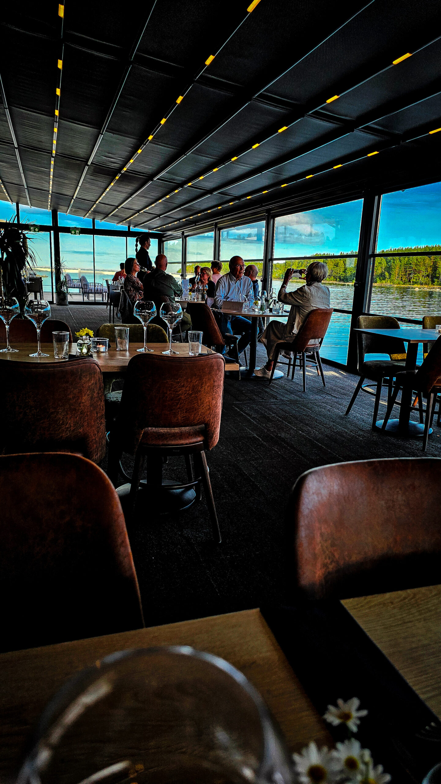 Die Fähre selbst wird zu einem kleinen Abschlussritual. Ein warmes Abendessen. Gespräche, die ruhiger werden. Und draußen beginnt der Himmel zu glühen.