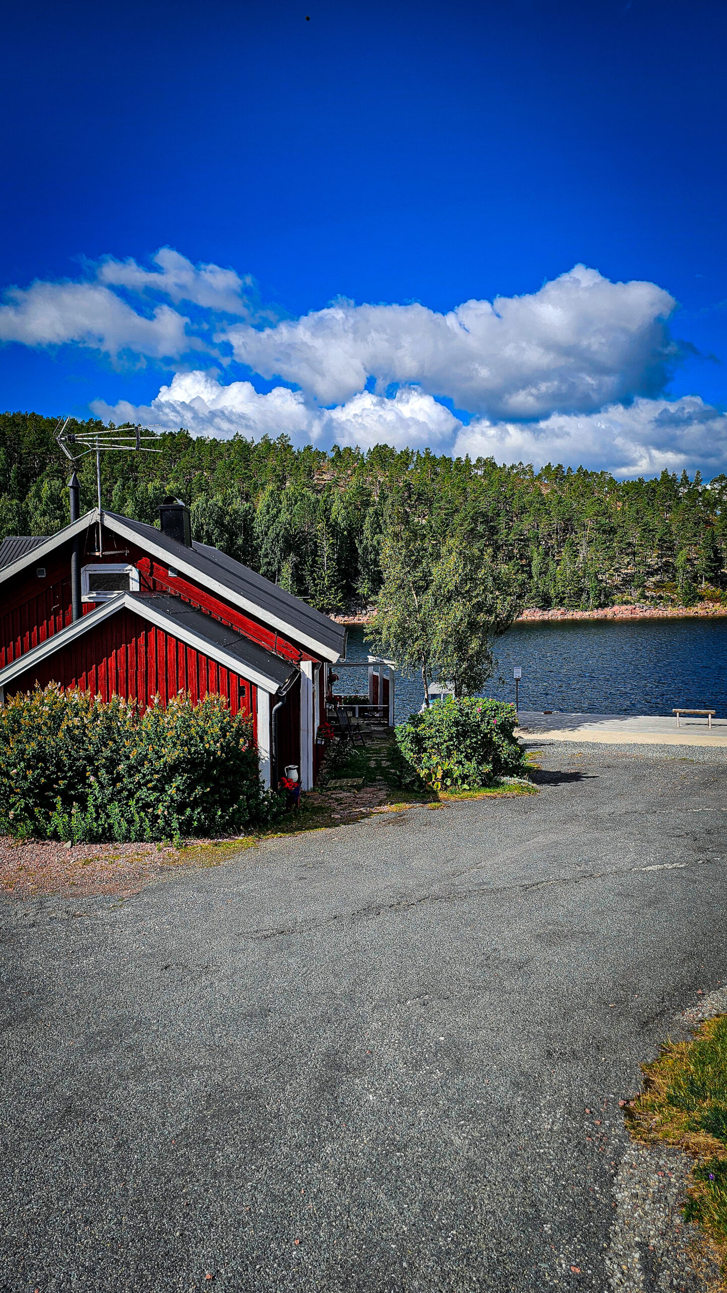 Die Straßen ziehen sich durch Wälder, vorbei an Seen, die wie Spiegel daliegen. Hier ein rotes Holzhaus, dort ein Bootssteg im Nirgendwo. Und immer wieder diese Weite. Kein Stress. Kein Hupen. Kein Gedränge. Nur Asphalt, Himmel und dieses Gefühl, dass alles ein bisschen langsamer tickt.