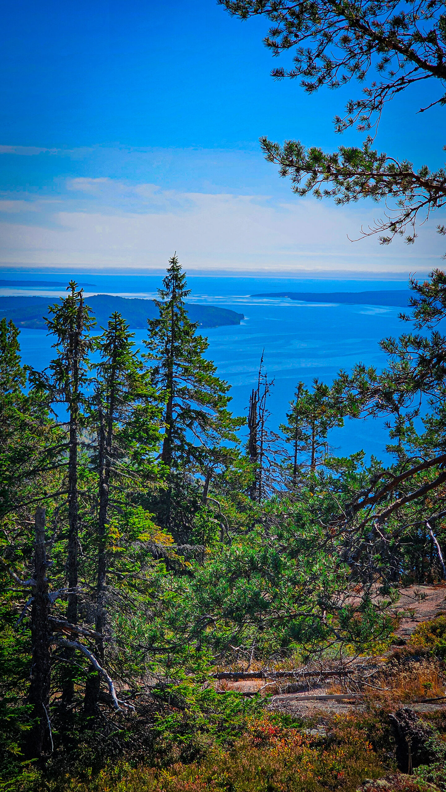 Hier ein kleiner Wanderweg durch Kiefernwald, der plötzlich den Blick aufs Meer freigibt. Dort eine Abzweigung, die eigentlich nur nach „mal sehen, was da kommt“ aussieht – und dann endet man auf einem Felsen mit einer Aussicht, die einem kurz die Sprache nimmt.