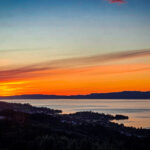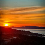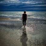 Die Sonne beginnt zu sinken. Der Himmel färbt sich erst zart, dann intensiv. Gold. Rosa. Ein bisschen Orange. Das Meer reflektiert alles, als würde es sagen: Ich nehme das für euch auf.