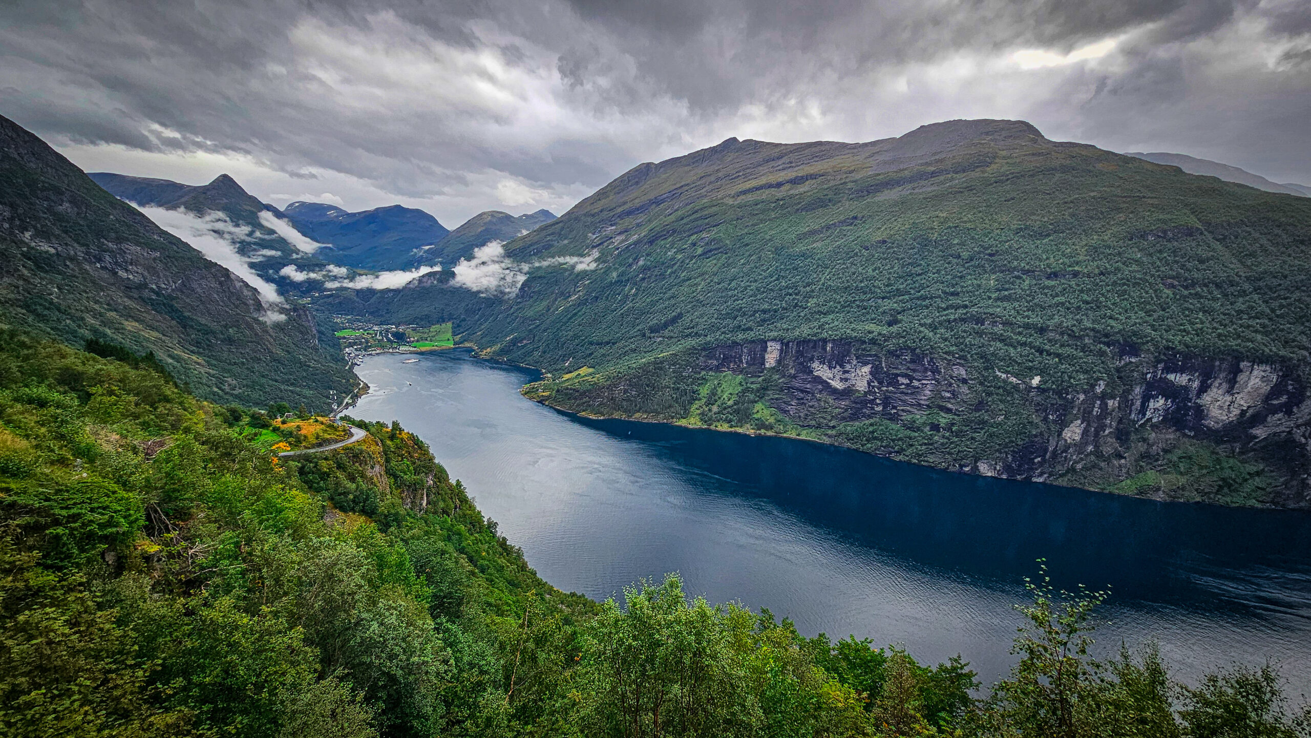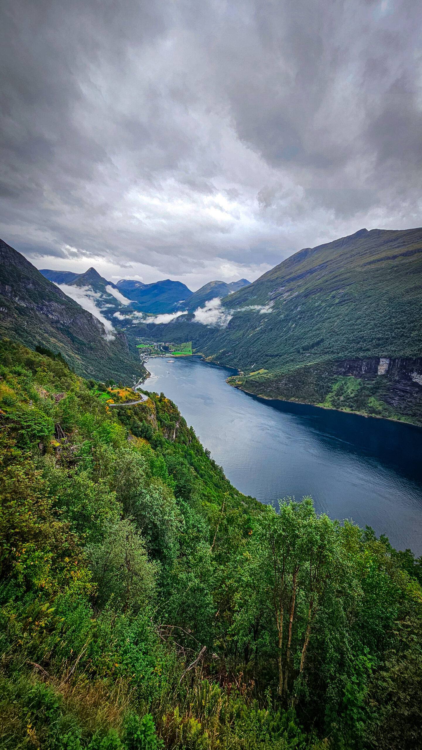Und dann reißt es kurz auf. Ein Fenster. Ein Blick auf den Fjord. Tiefblau unter grauem Himmel. Ein Sekundenbruchteil von Klarheit – bevor sich alles wieder schließt.