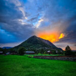 Das Abendlicht taucht die Kirche in warmes Gold. Und dann – als Krönung – spannt sich ein Regenbogen über die Berge.