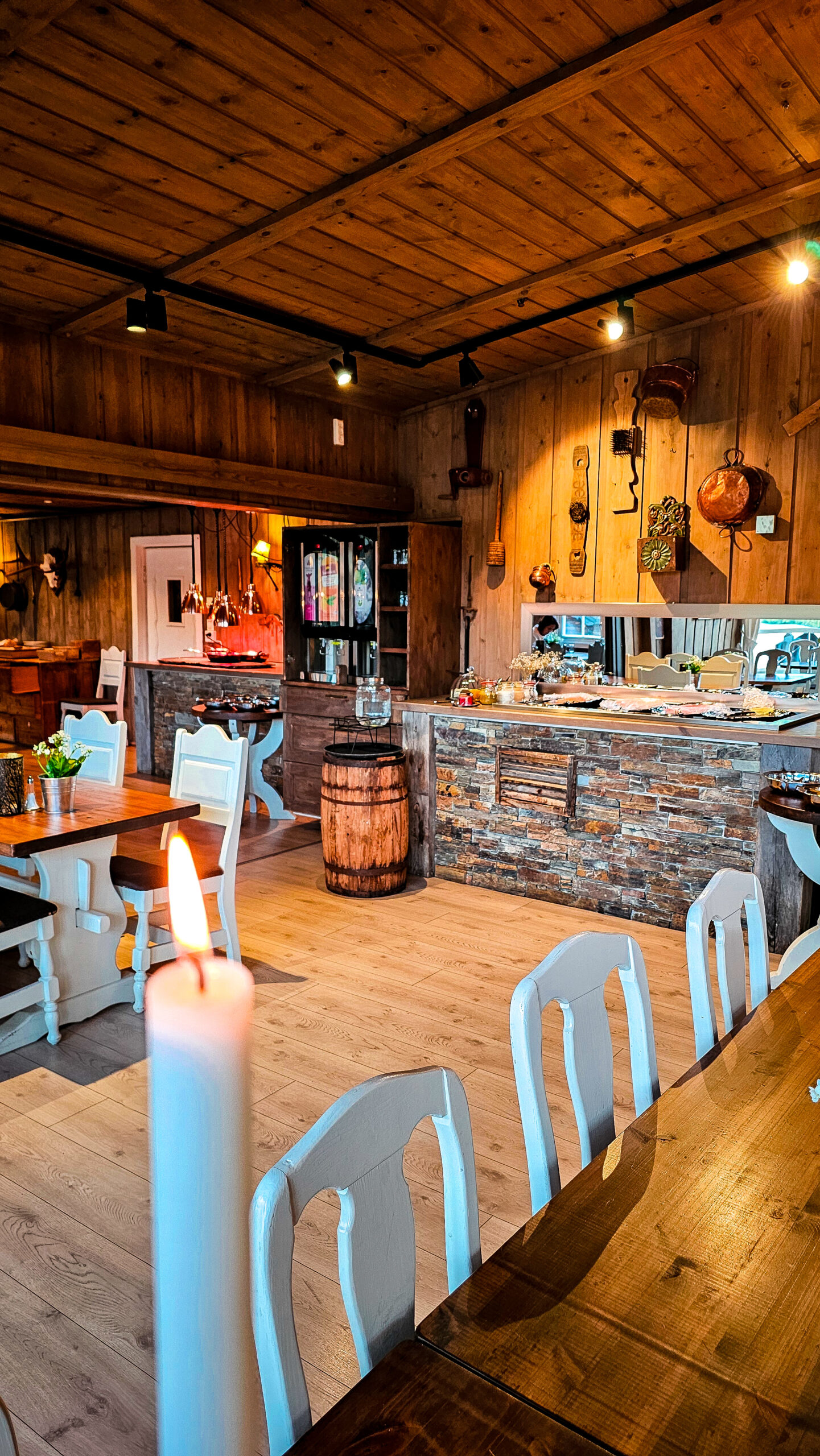 Nach einem langen Fahrtag gibt es nicht nur gutes Essen – ehrlich, warm, genau das Richtige nach Stunden im Auto – sondern das Sahnehäubchen: eine Sauna mit Ausblick.