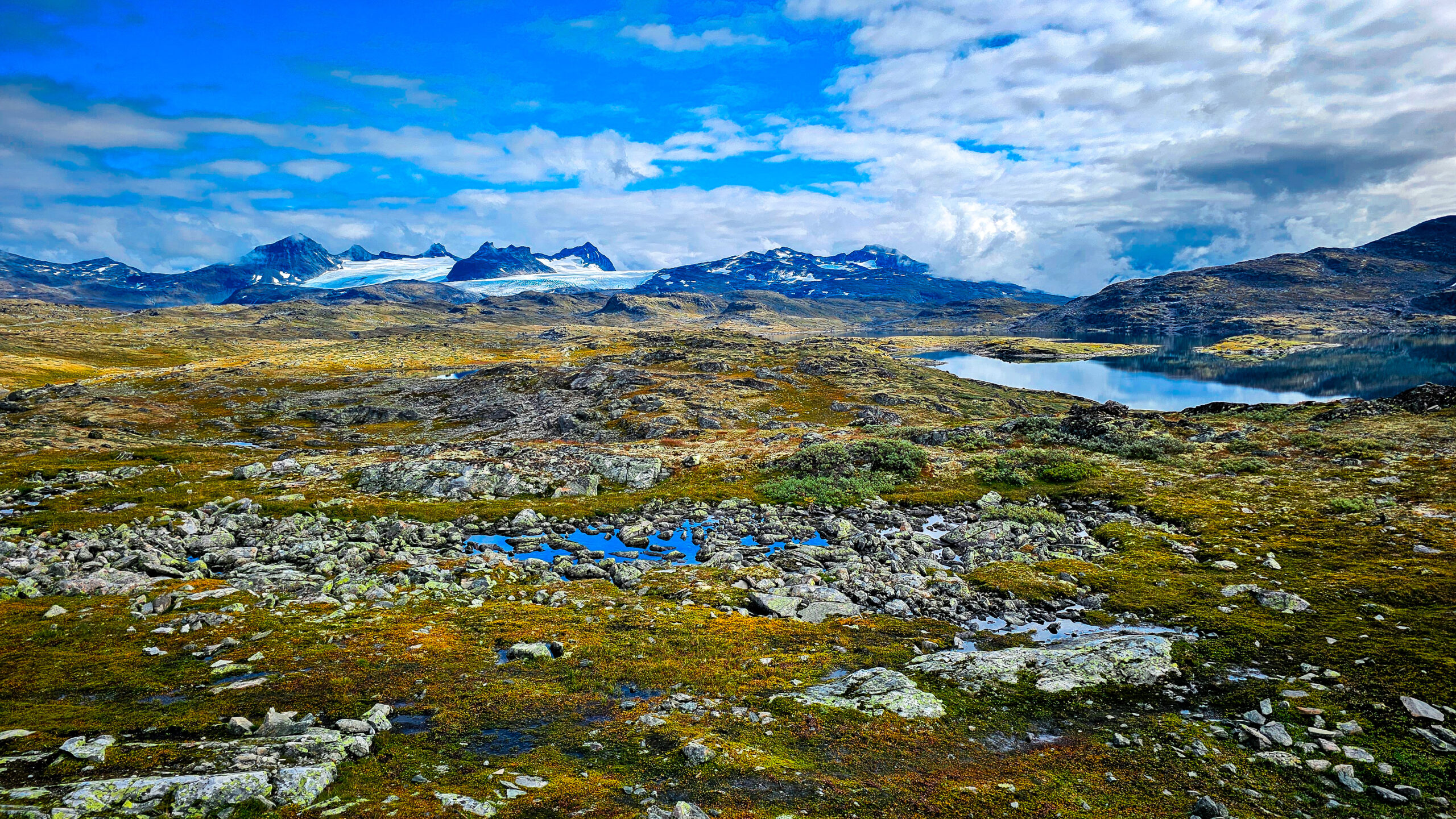 Die Straße zieht sich über endlose Hochebenen. Diese typischen norwegischen Weiten, irgendwo zwischen Mondlandschaft und Märchenfilm. Kaum Bäume. Viel Himmel. Seen, die aussehen, als hätte jemand sie mit einem Lineal in die Landschaft gesetzt.
