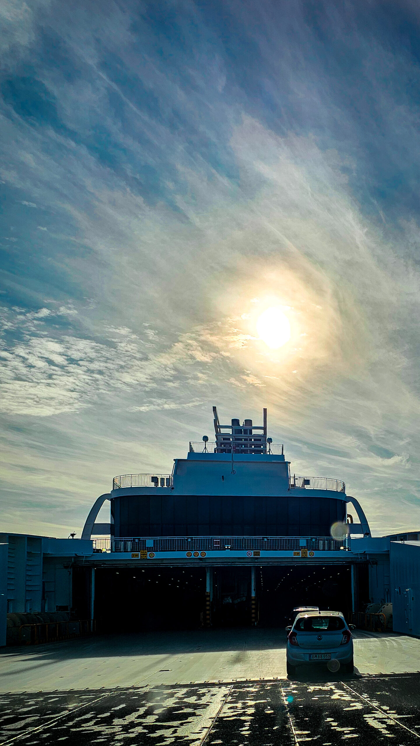 Nach einem ganzen Tag auf der Straße war die Müdigkeit nicht mehr zu ignorieren. Umwege, Baustellen, kleine Hindernisse – alles zog sich ein bisschen. Jeder Kilometer fühlte sich am Ende doppelt so lang an wie geplant. Und als ich schließlich die Fähre erreichte, war da vor allem eines: Erleichterung. Zumindest nach langem hin und her, ob ich überhaupt mitfahren darf, hatte mich nämlich verbucht, konnte es aber final doch noch klären. Lernfaktor an dieser Stelle – solche Dinge direkt beim Anbieter buchen, nicht über Portale oder Drittanbieter, sonst kann es eng werden, wenn man jemanden erreichen will.