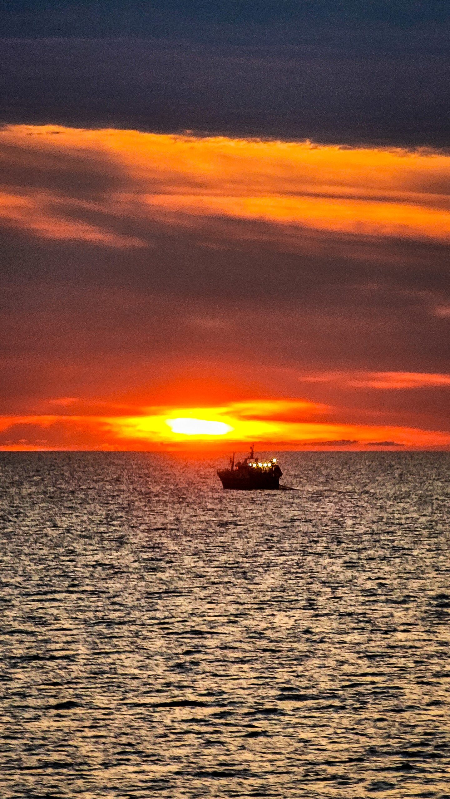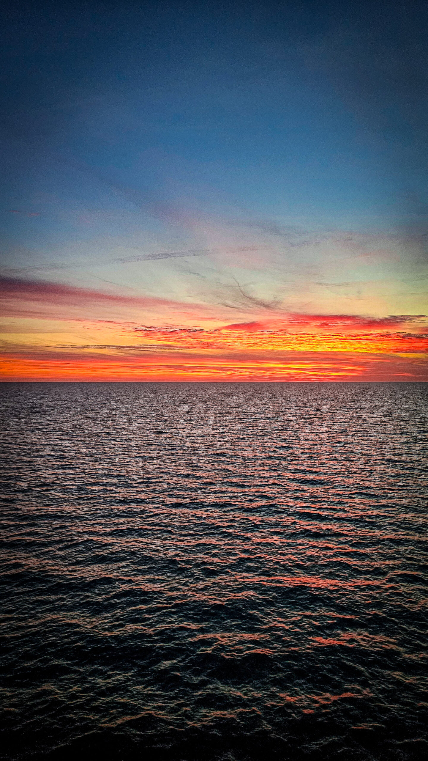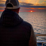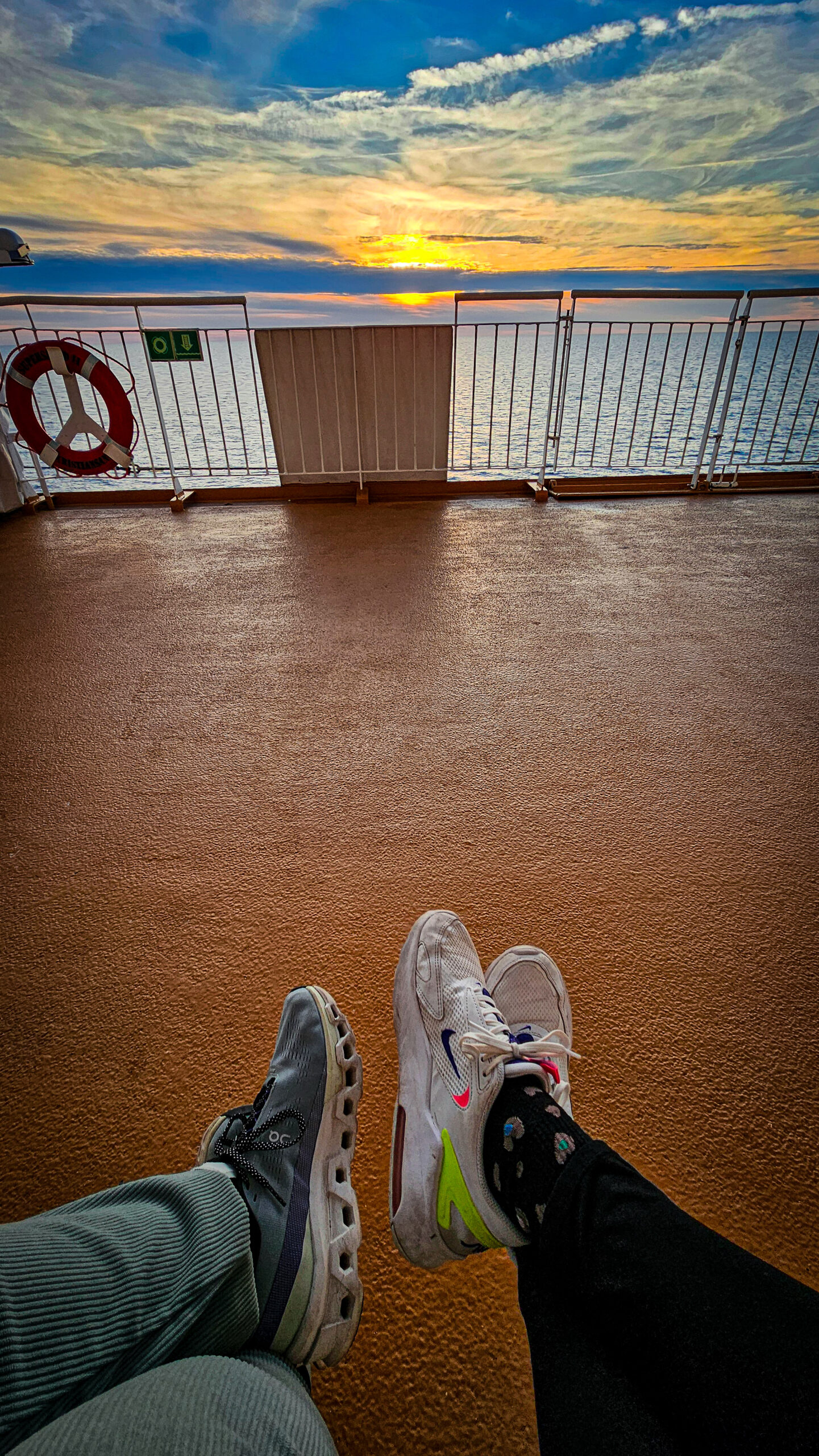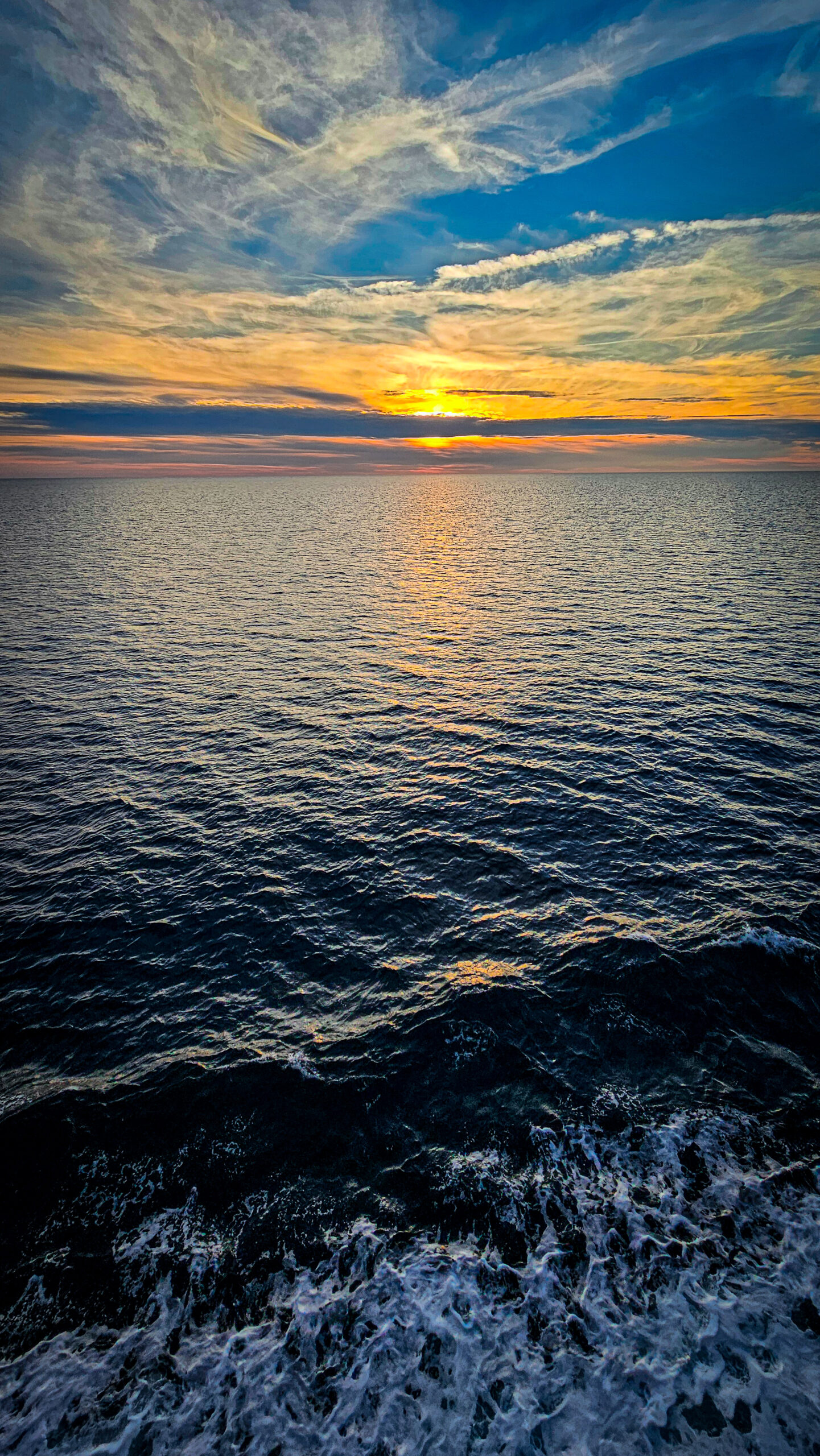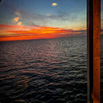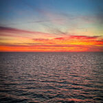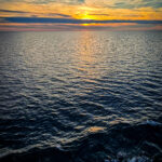 Wir stehen an Deck. Der Wind weht. Das Meer liegt ruhig da. Und der Sonnenuntergang taucht alles in eine goldene Ruhe, als wollte er sagen: Es war gut so.