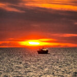 Die Sonne schob sich langsam über den Horizont. Das Wasser glühte in Gold und Rosa. Die Küstenlinie tauchte wie ein Versprechen aus dem Dunst auf. Es war still. Fast ehrfürchtig.