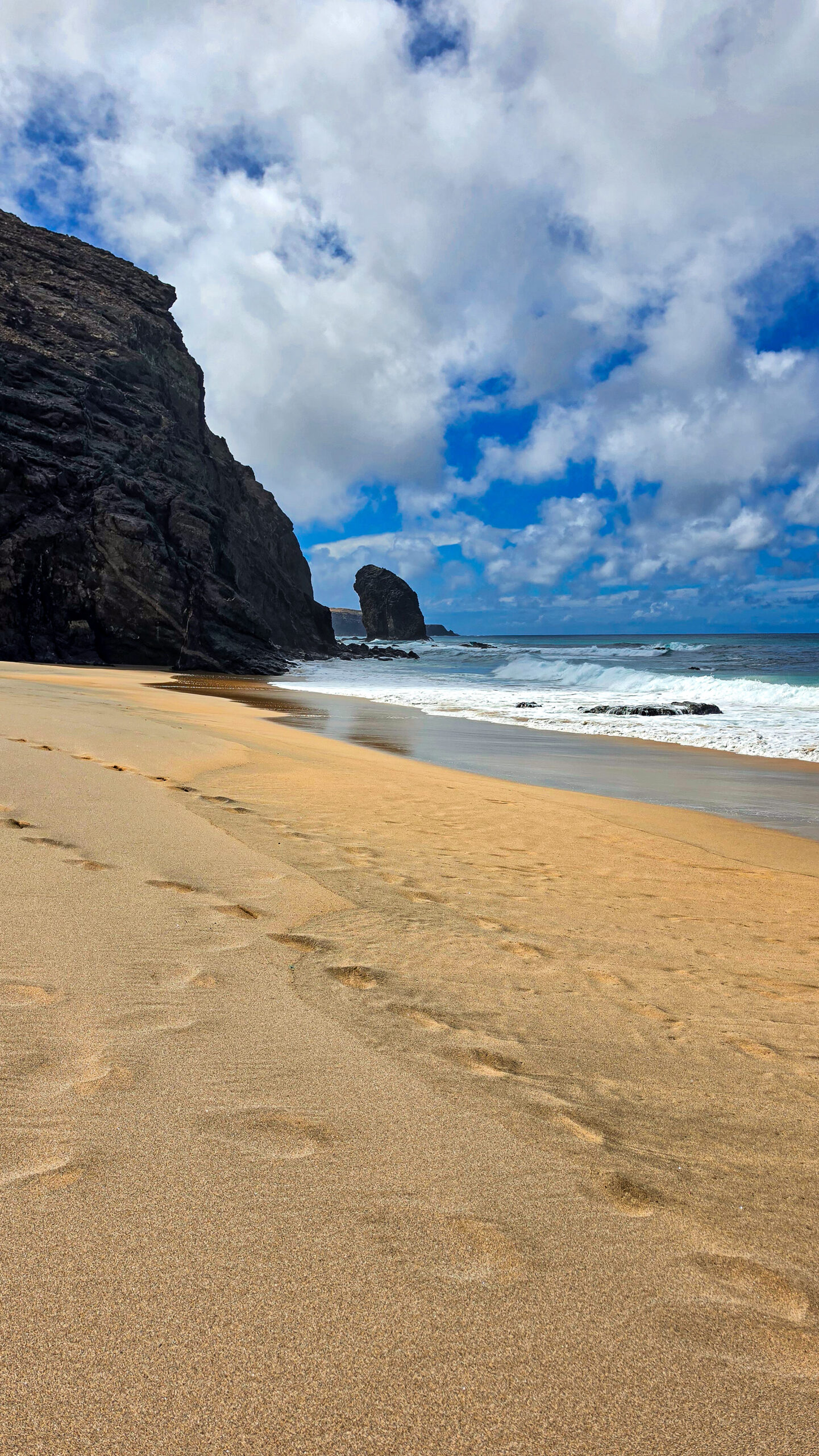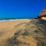 Ein bisschen Mut sammeln, das kleine „Bergchen“ runter, ein paar hundert Meter am Strand entlang – und BAM: Roque del Moro.