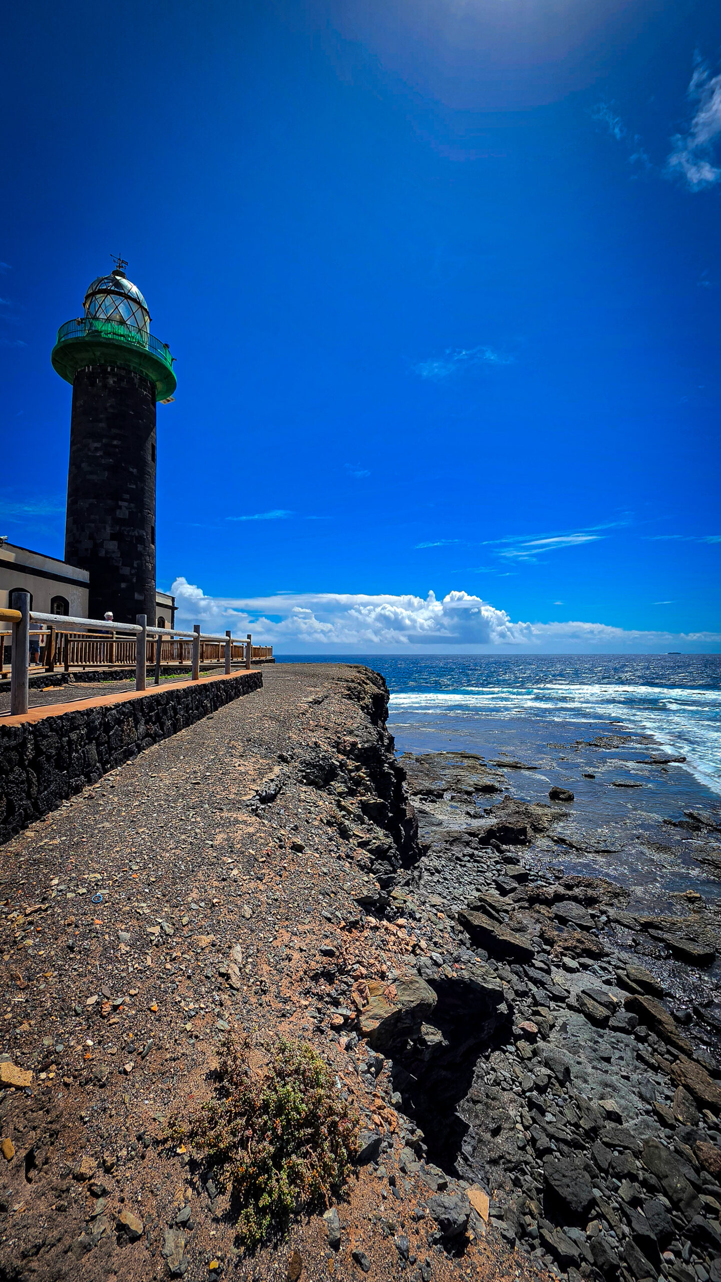 Gebaut aus dunklem Lavagestein, thront er oben auf den Klippen, fast schon dramatisch inszeniert. Nicht geschniegelt, nicht geschniegelt schön – sondern rau. Ehrlich.