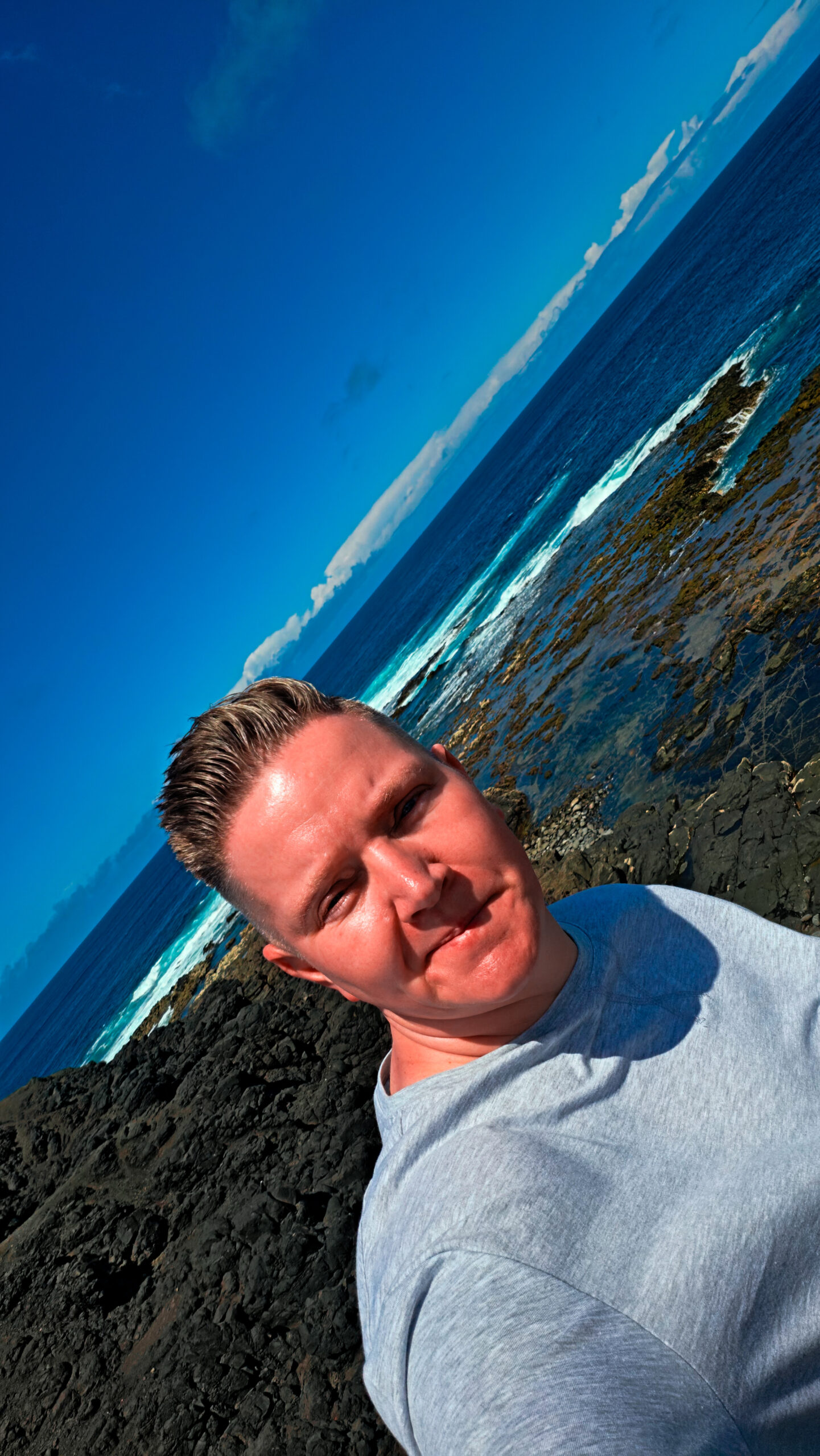 Und das Absurde: Es sind vielleicht 15 Minuten vom wilden Westen der Insel bis zur „ruhigen“ Ostseite. Während dort drüben Sturm, Wellen und Chaos herrschen, ist hier plötzlich… fast friedlich.