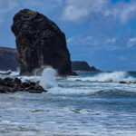 Was dort gerade abgeht, ist schwer zu beschreiben. Der Sturm – ich nenne ihn jetzt einfach mal liebevoll „Therese“ – hat das Meer komplett aufgewühlt. Meterhohe Wellen, die mit einer Wucht an die Küste krachen, dass man kurz innehalten muss.