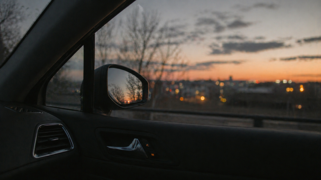 Motor aus, Fenster einen Spalt offen. Ich überbrücke Zeit, bevor ich weiter muss. Kein Handy, keine Musik. Nur ich und dieses leise Draußen. Ich hätte früher gedacht, dass mich das nervös macht. Tut es nicht.